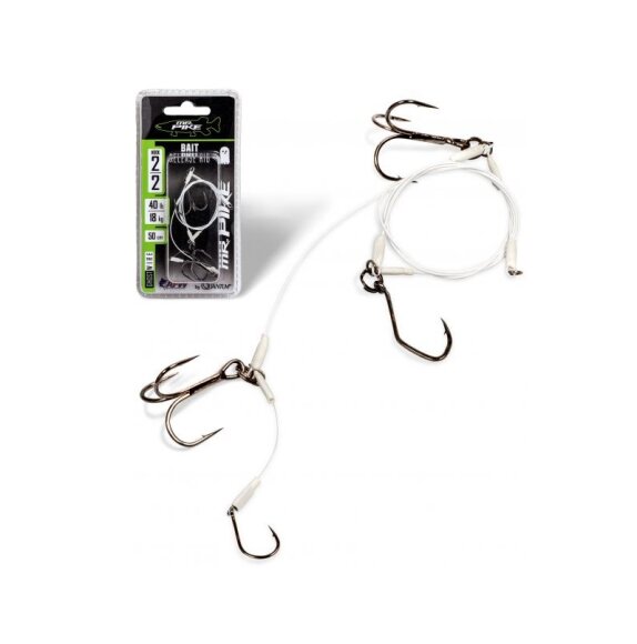 Færdiglavet release-rig til geddefiskeri, enten på bunden eller under flåde, med både død eller levende agn. Undgå besværet med at lave rigs selv. Dette rig kan vise sig at være en yderst effektiv metode i jagten på søens udfordrende rovfisk! Bait Release Rig er konstrueret, så agnfisken frigøres fra riget ved modhugget, hvilket tillader krogene at sætte sig mere sikkert i fiskens mund. Perfekt til geddefiskeri! Rigget er udstyret med ultra stærke og skarpe kroge, samt et 18 kg Ghost-stålforfang i hvidt.