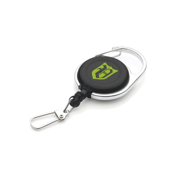 Pin on reel fra Vision til dit værktøj på vadejakken. Fordelen ved denne er den er karabinhage basseret og ikke en sikkerhedsnål der skal stikkes igennem en vandtæt jakke.