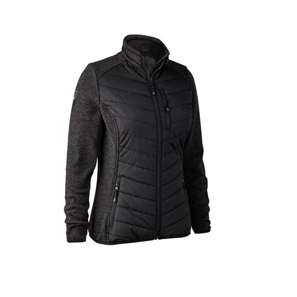 Denne Deerhunter vatterede Lady Caroline jakke er den ideelle ledsager til enhver form for udendørs eventyr. Med sin stilfulde og praktiske udformning holder den dig varm takket være ekstra isolering, samtidig med at dens strækbare design sikrer komfort hele dagen. De strikkede side- og skulderpaneler skaber en smigrende og behagelig pasform, der følger din krop. Jakken er udstyret med to forlommer og en brystlomme, alle med skjulte lynlåse, hvilket tilføjer både elegance og funktionalitet. I en neutral sort farvepalette er denne vatterede Lady Caroline jakke alsidig nok til alt lige fra hundeluftning til frokostaftaler.
