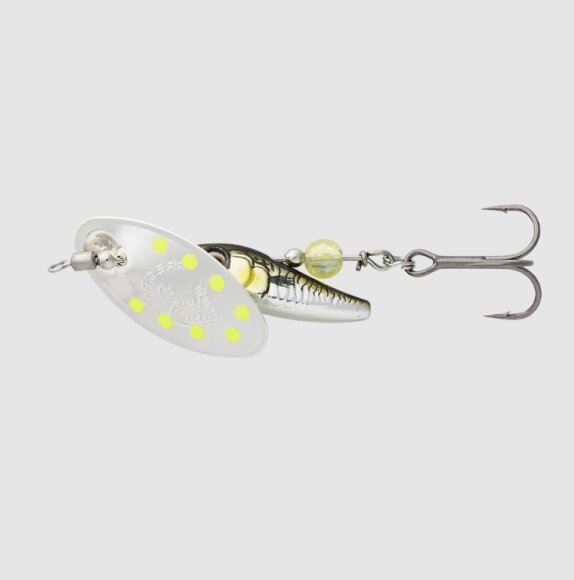 Sticklebait Spinner er en super detaljeret inline spinner der er baseret på en 3D scanning af den rigtige fisk. Den unikke gang i vandet kombineret med det roterende blad giver en spinner med rigtig meget gang i. Spinneren er monteret med de ultra skarpe Savage Gear SGY 3-kroge, der medfølger en ekstra "enkelt" krog hvis man ønsker at bruge det frem for en 3-krog.