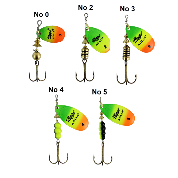 Aglia Tiger er en specialversion af den velkendte Aglia Fluo, og den bevarer de samme fluorescerende egenskaber, der gør den ekstra effektiv. Spinneren har blade, der lyser op, når de udsættes for ultraviolet lys, og fortsætter med at skinne længe efter, at andre farver er blevet usynlige. Dette gør Aglia Tiger særligt velegnet til brug i udfordrende forhold som mudret vand, overskyet vejr og dybt vand.