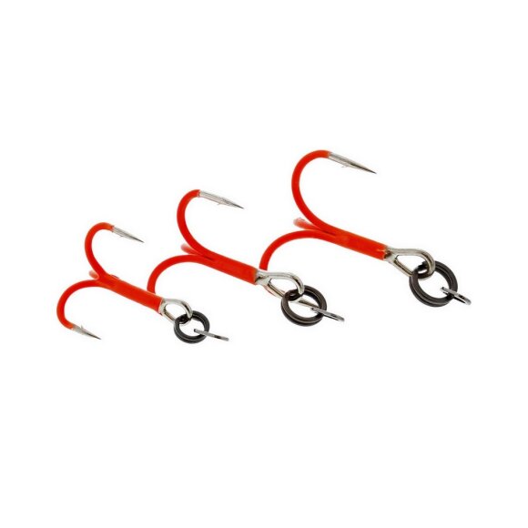 Westin "Ready to Fish" trekrog er monteret med en splitring, så den er klar til brug med det samme. Hver pakke indeholder 4 ultra skarpe kroge, der fås i tre størrelser for at dække alle dine fiskebehov: størrelse 4, 6 og 8. De er designet med UV-farve for ekstra synlighed under vandet, hvilket øger chancen for bid.