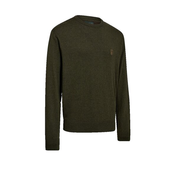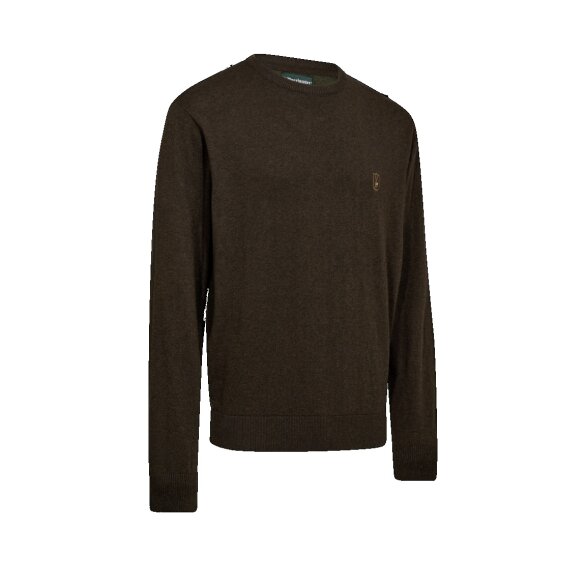 Det klassiske rundhalsdesign giver et tidløst udtryk, der passer ind i enhver garderobe, uanset om du bruger den til jagt, fritid eller arbejde. Forstærkede albuelapper i kontraststrik øger slidstyrken og giver et teknisk og funktionelt touch. Med diskret logobrodering på brystet får du en stilren striktrøje, der leverer både performance og et raffineret look.