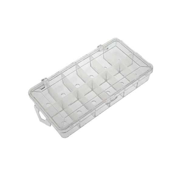 FutureFly Dubbing Box er en praktisk og robust tom æske designet til opbevaring af din dubbing. Æsken har 12 separate rum, så du nemt kan organisere forskellige farver og materialer. Hvert rum er udstyret med et lille hul, der gør det let at tage dubbing ud uden at åbne låget. Perfekt til fluebindere, der ønsker orden og hurtig adgang til deres materialer, både ved fluestikket og på farten.