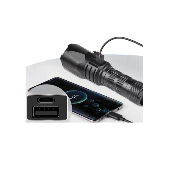 - Kraftig 2-i-1 lommelygte og powerbank