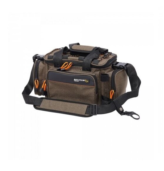 Savage Gear tasken er udstyret med robuste nylonlynlåse, der sikrer lang holdbarhed og problemfri åbning og lukning, selv under krævende forhold. Den justerbare skulderstrop er behagelig at bære, også når tasken er fuldt pakket, og de integrerede clips giver mulighed for nem montering af fangstnet. Derudover er tasken forsynet med en praktisk flaskeholder, så du altid har væske lige ved hånden under fiskeriet.