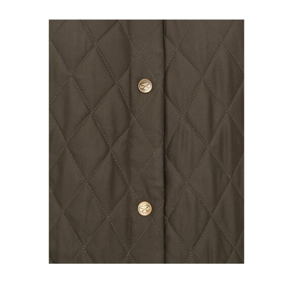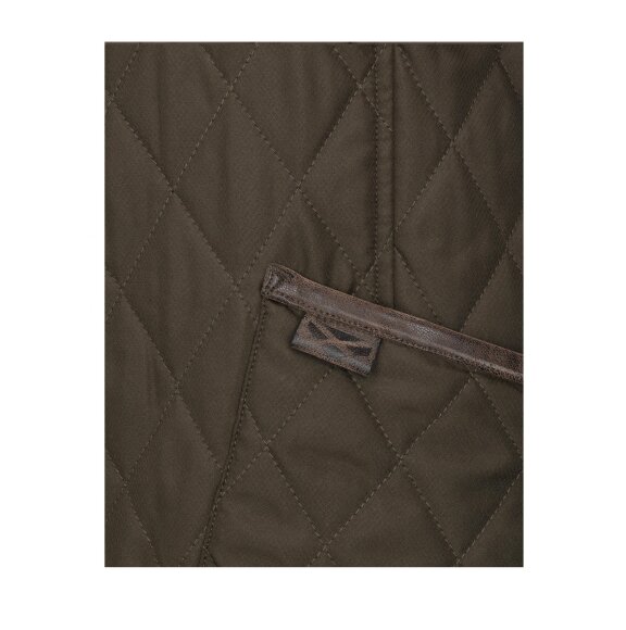 Det klassiske diamantquiltede design kombineret med bløde detaljer og en diskret, landlig stil giver jakken et tidløst udtryk, som fungerer lige godt på landet som i byen. Ydermaterialet i mat ripstop-polyester er slidstærkt og designet til daglig brug, mens den PFAS-fri Teflon EcoElite vandafvisende behandling beskytter mod let regn og fugt. Krave og kantdetaljer i læderlook tilfører et eksklusivt præg, og den antikmessingfarvede trykknaplukning understreger det klassiske design. En let, men funktionel quiltet jakke, der er oplagt til overgangsperioder og kølige dage, hvor du ønsker både bevægelsesfrihed og stil.