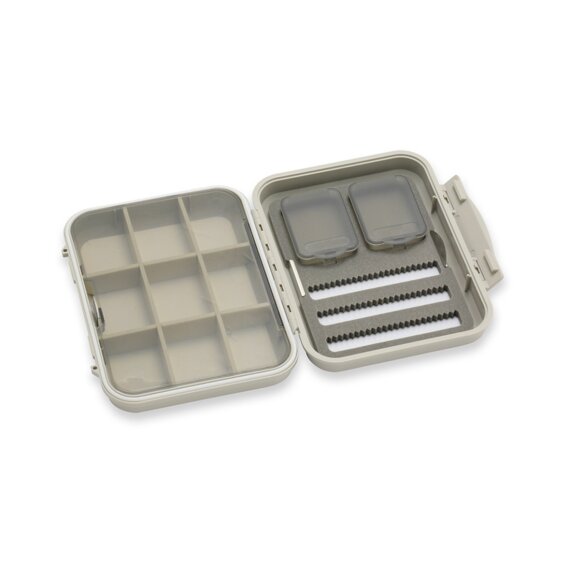 Det dedikerede tørfluerum beskytter fluerne, så hackler og materialer bevarer deres form og flydeevne på vandet. Micro-slit foam-sektionen holder nymfer sikkert på plads uden at beskadige krogene og sikrer, at de bliver siddende under transport og fiskeri.