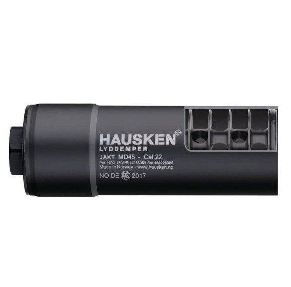 Den kompakte konstruktion med en diameter på 45 mm giver en effektiv støjdæmpning uden at gøre riflen unødigt tung eller ubalanceret. Med sin korte længde er Hausken MD45 et praktisk valg til både jagt og træning, hvor lav vægt og god balance er vigtigt. Lyddæmperen monteres nemt på rifler med 1/2"-20 UNF gevind, som er en af de mest anvendte gevindtyper til mindre kalibre som .17 HMR.