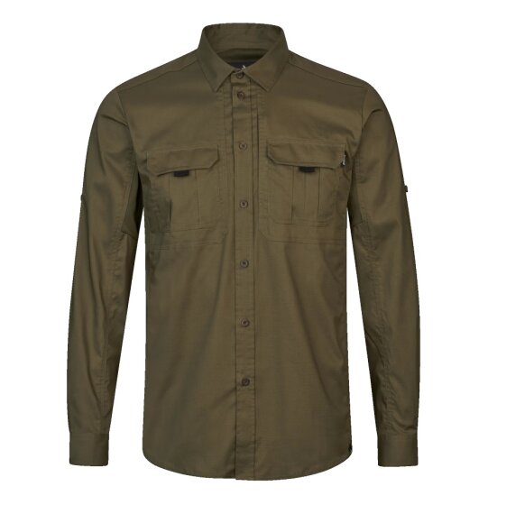 For optimal komfort er skjorten udstyret med strategisk placerede ventilationszoner. Skjulte meshpaneler under armene, i siderne og øverst på ryggen sikrer effektiv luftcirkulation, så du holdes kølig, når temperaturen stiger eller aktivitetsniveauet er højt. Det gør Selous-skjorten ideel til både jagt, safari og andre krævende outdoor-aktiviteter.